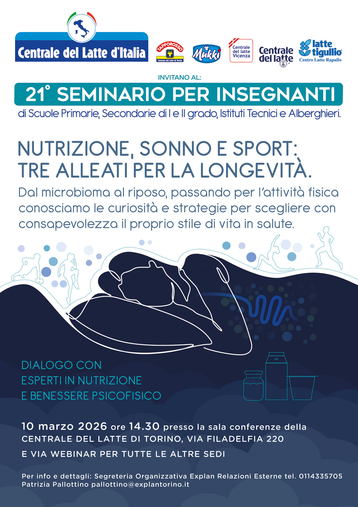 in linea con i programmi didattici e i piani di prevenzione e salute la Centrale del Latte d’Italia con questo seminario intende promuovere attraverso la voce di esperti, per ciascuna tematica affrontata, la conoscenza del trinomio nutrizione – sonno – sport.